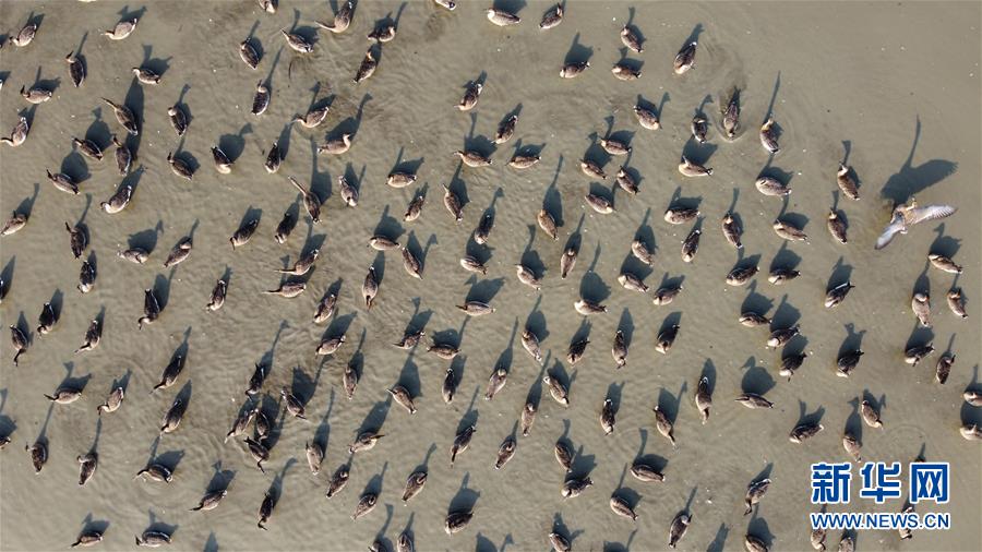 12月7日,一群候鳥在升金湖停留(無人機拍攝)。
