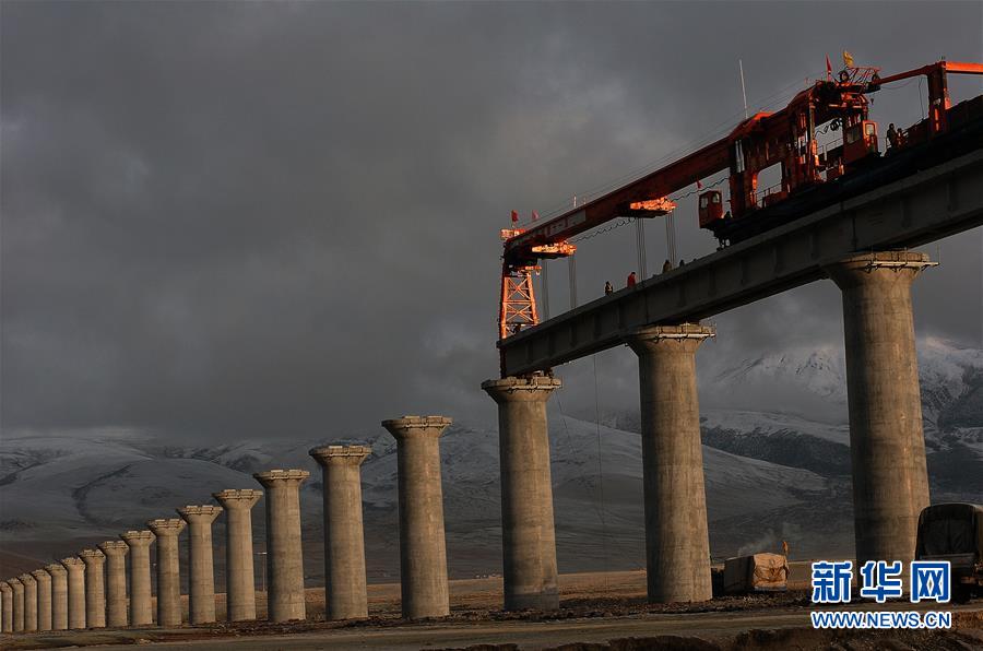 青藏鐵路在施工建設中(2005年5月15日攝)。新華社記者覺果攝