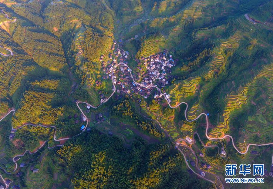 這是融水苗族自治縣桿洞鄉(xiāng)黨鳩村烏英苗寨的公路(4月18日無(wú)人機(jī)拍攝)。新華社記者黃孝邦攝