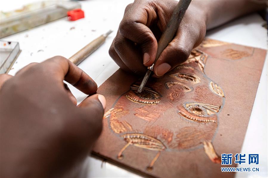 12月20日,在肯尼亞內羅畢庫奧納藝術中心,一名藝術家在工作室內創作作品。 新華社記者 王騰 攝