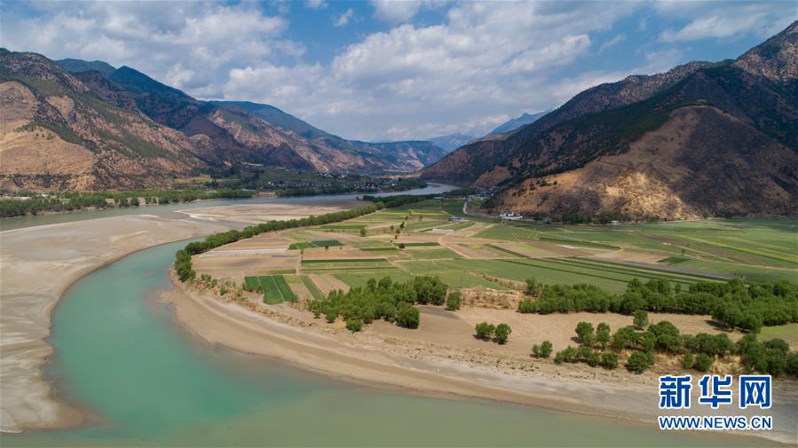 這是4月27日在云南省貢山獨龍族怒族自治縣丙中洛鎮拍攝的“怒江第一灣”(無人機拍攝)。新華社記者江文耀攝