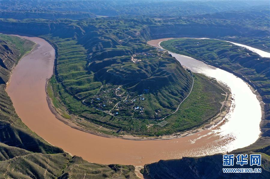 這是8月28日拍攝的山西省永和縣閣底鄉境內黃河乾坤灣(無人機照片)。 新華社記者 曹陽 攝