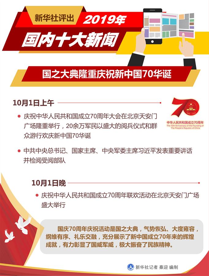 圖表:新華社評出2019年國內十大新聞 新華社記者 秦迎 編制