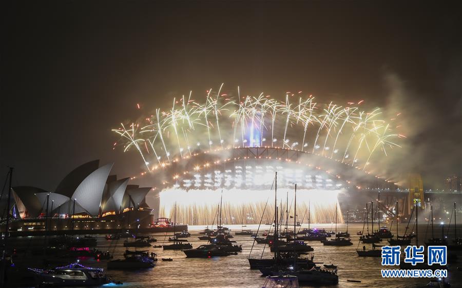 當地時間2020年1月1日,澳大利亞悉尼歌劇院和海港大橋畔燃放煙花,慶祝2020年的到來。新華社記者白雪飛攝