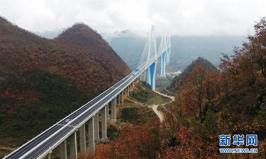 拼版照片:上圖為2019年12月30日無人機拍攝的平塘特大橋;中圖為2019年9月20日無人機拍攝的平塘特大橋;下圖為2018年9月25日無人機拍攝的平塘特大橋。新華社記者楊文斌攝