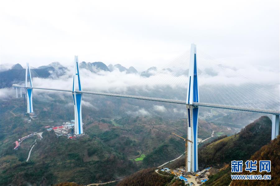 12月30日,云霧繚繞中的貴州平塘特大橋(無人機照片)。新華社記者劉續攝