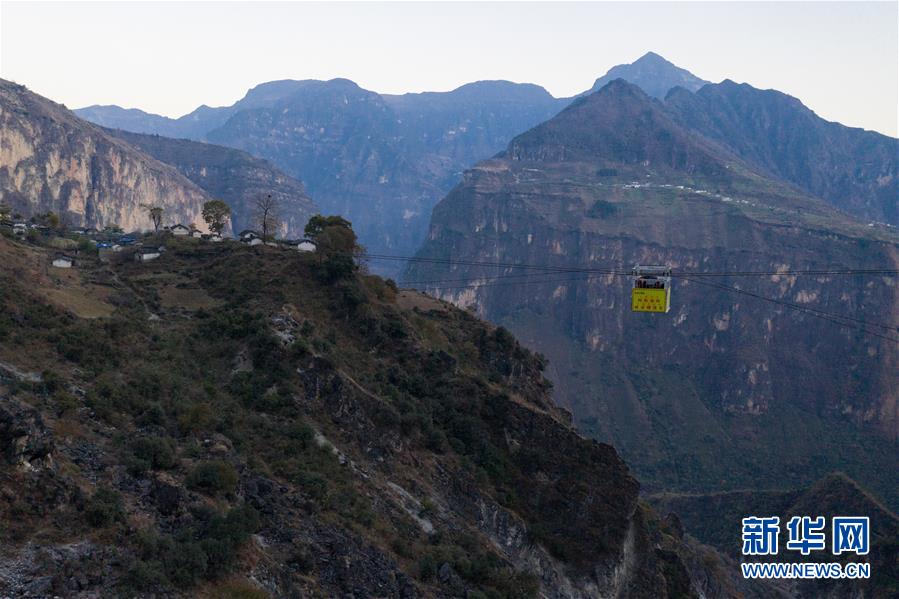 阿布洛哈村三面環山,幾乎全是懸崖絕壁;一面依水,金沙江支流西溪河流淌而過。以前,村民們進出村需攀爬懸崖上鑿出來的一條小路;村里的物資主要靠馬馱人背,走一趟要3個多小時。交通成為村里脫貧攻堅最大的“硬骨頭”,全村65戶253人,目前仍有建檔立卡貧困戶29戶182人。為打通交通瓶頸,當地政府決定修建一條3.8公里的四級通村公路。今年11月,工程在進行到“最后一公里”時,施工隊伍發現懸崖兩側多為碎屑巖、變質巖等,原本規劃修建的C型隧道很難推進。專家決定修建懸崖擺渡車,確保村民年底前能順利出行;同時,改C型隧道為全隧道,繼續修建通村公路,項目預計2020年4月完工。新華社記者江宏景攝