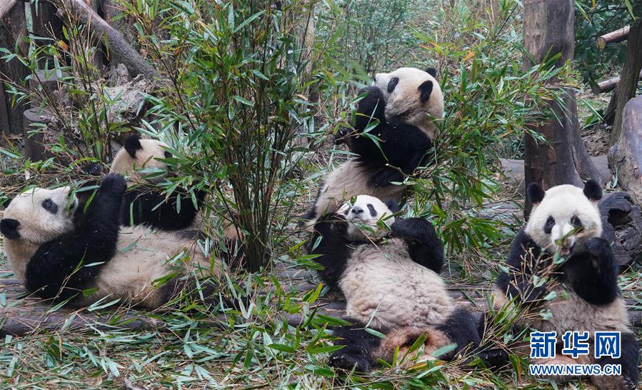 這是1月1日在成都大熊貓繁育研究基地拍攝的大熊貓。 新華社發(陳居偉 攝)