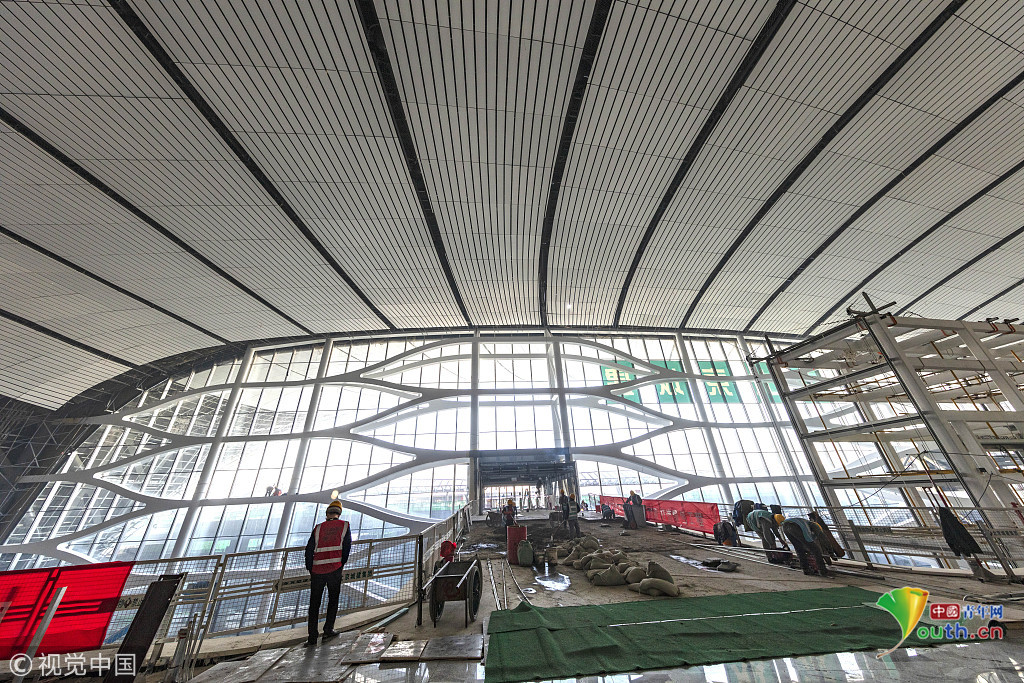 2018年12月19日,北京大興國際機場航站樓的室內裝修在有條不紊的推進中。視覺中國