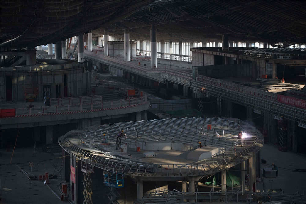 2018年8月30日,北京,攝影師在媒體開放日拍攝到北京大興在建新機場的航站樓內部構造。該機場預計將于2019年完工,屆時將成為世界上最大的機場之一。NICOLAS ASFOURI /視覺中國
