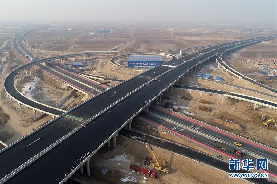 這是1月3日拍攝的北京大興國(guó)際機(jī)場(chǎng)北線(xiàn)高速公路廊坊段王場(chǎng)互通樞紐(無(wú)人機(jī)照片)。新華社記者牟宇攝