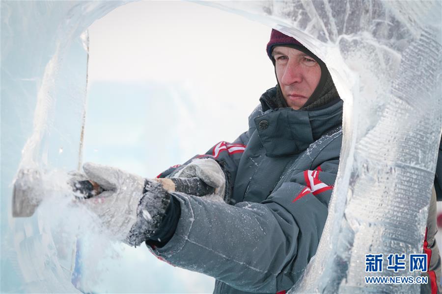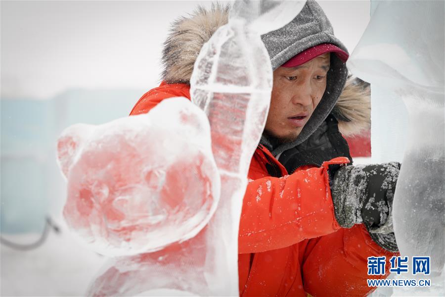 1月6日,參賽者在創作冰雕。新華社記者王松攝