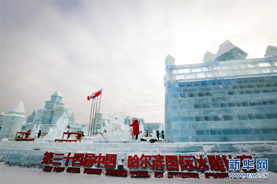 1月7日,參賽者在進行冰雕創作。當日,在哈爾濱冰雪大世界園區舉行的第三十四屆中國哈爾濱國際冰雕比賽進入第二天,參賽的冰雕作品已芳容初現。新華社記者王松攝