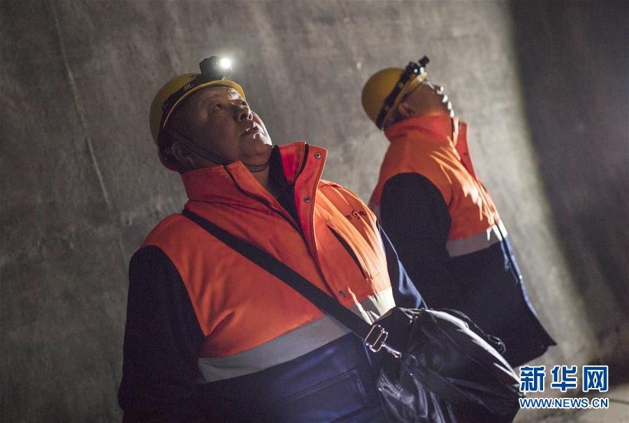 通化通信車間無線工區鐵路通信工人觀察隧道頂部通信線纜是否有外露情況(1月10日攝)。2020年春運1月10日拉開帷幕。新華社記者許暢攝