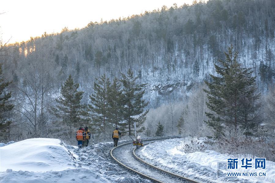 1月8日,西羅奇維修工隊工作人員在嫩林線497公里處進行維修作業。新華社記者王毓國攝