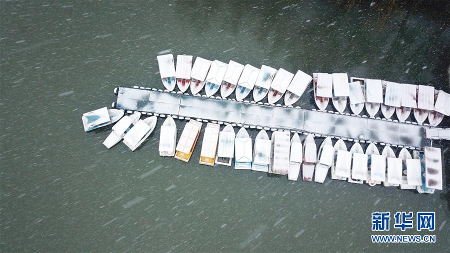 這是1月15日拍攝的合肥市包公園雪景(無人機照片)。 當日,安徽省合肥市迎來降雪天氣。雪中的合肥市包公園景色別致。 新華社記者 張端 攝