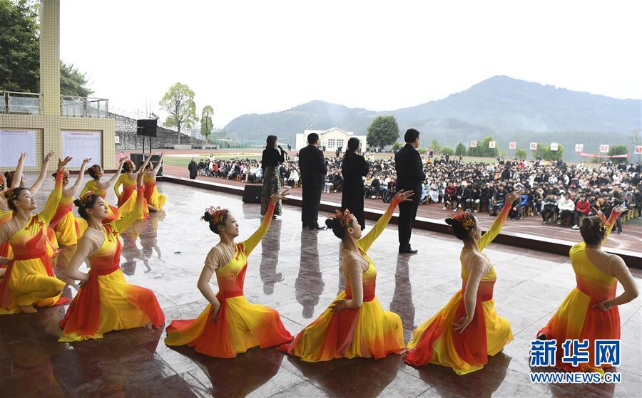 1月15日,師生們在觀看慰問演出。 當日,“我們的中國夢”——文化進萬家中央歌劇院文藝小分隊來到重慶市石柱土家族自治縣第一職業學校進行慰問演出,為學校的三千多名師生帶來了一場精彩的音樂大餐。 新華社記者 王全超 攝