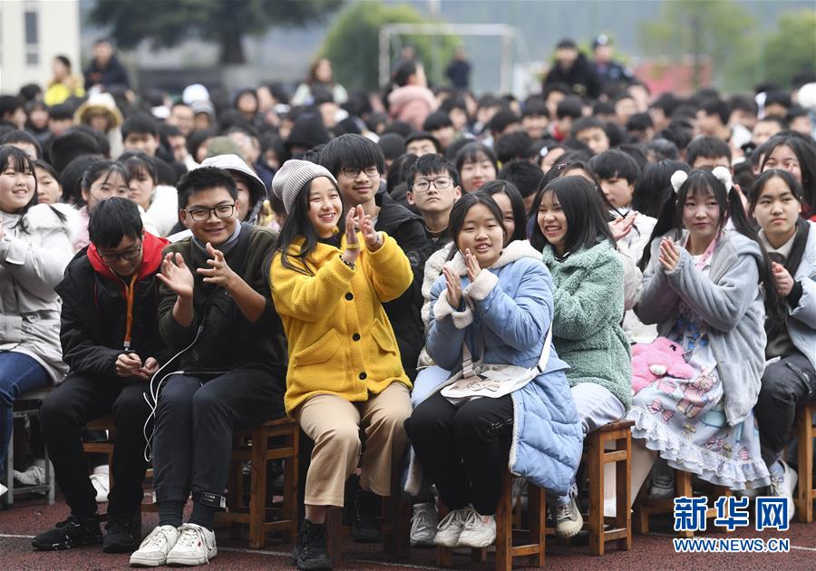 1月15日,師生們在觀看慰問演出。 當日,“我們的中國夢”——文化進萬家中央歌劇院文藝小分隊來到重慶市石柱土家族自治縣第一職業學校進行慰問演出,為學校的三千多名師生帶來了一場精彩的音樂大餐。 新華社記者 王全超 攝