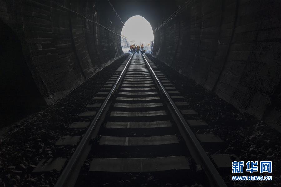 1月6日,在加格達(dá)奇工務(wù)段西羅奇嶺二號(hào)隧道,西羅奇維修工隊(duì)工作人員進(jìn)行維修作業(yè)。新華社記者才揚(yáng)攝