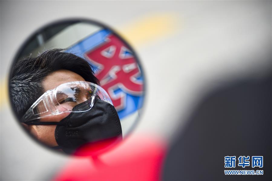 書院社區志愿者梁尚在騎車為居民送藥途中(2月23日攝)。 新華社記者 胡虎虎 攝