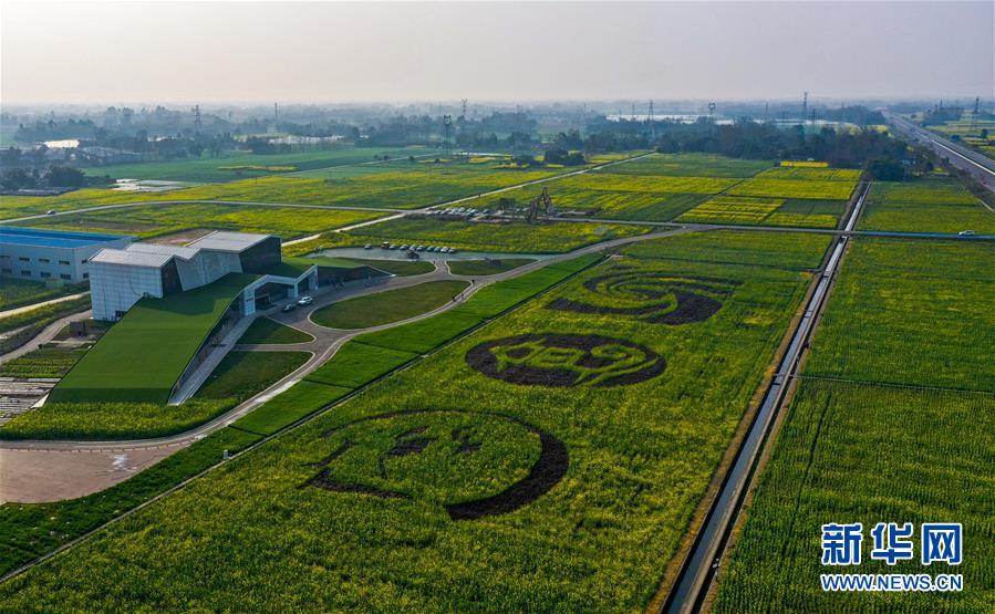 2月24日在四川省大邑縣安仁鎮(zhèn)永興村拍攝的油菜花田(無人機照片)。 新華社記者 王曦 攝