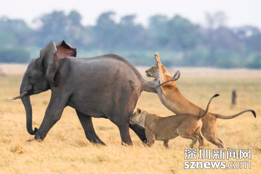 小象遭獅子獵食,象群趕到霸氣護崽。