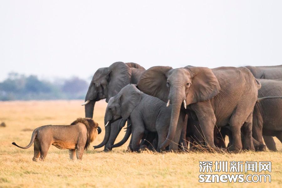 小象遭獅子獵食,象群趕到霸氣護崽。