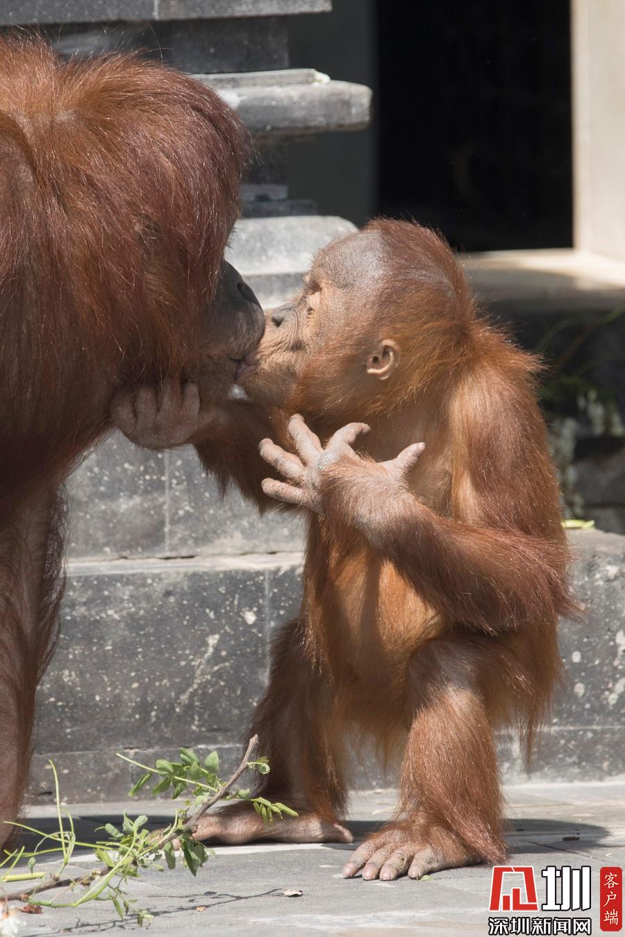 當(dāng)時(shí)三歲的 Berani正獨(dú)自在戶(hù)外玩耍,不一會(huì)它的媽媽 Sari就找來(lái)了,一把拖著娃從草地上回到家門(mén)口,然后立刻送上擁抱和親吻,原來(lái)猩媽媽是想孩子了呀!