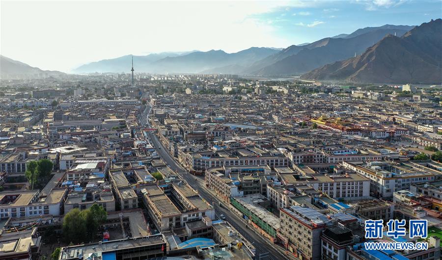 鳥瞰拉薩古城(5月16日無人機拍攝)。新華社記者張汝鋒攝