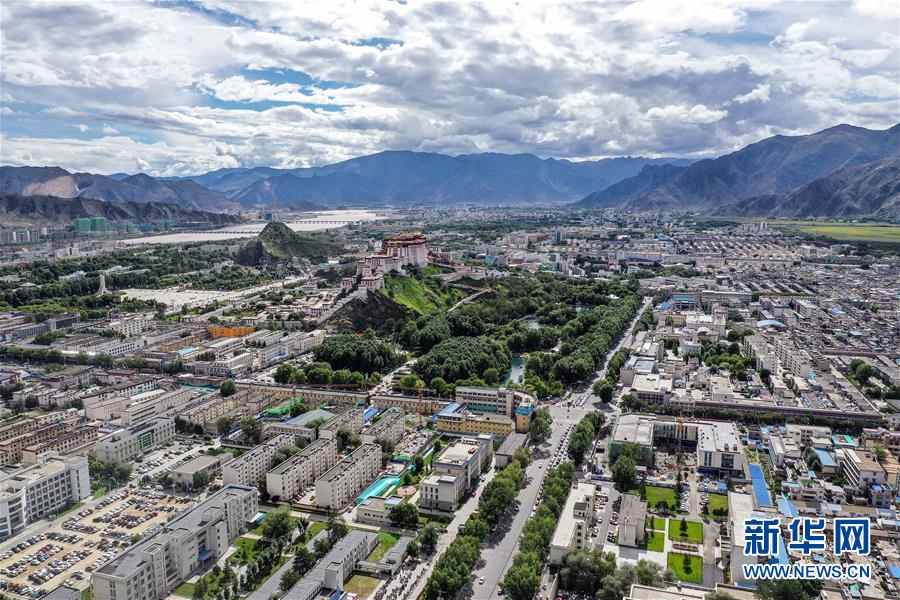 鳥瞰拉薩古城(8月10日無人機拍攝)。新華社記者晉美多吉攝
