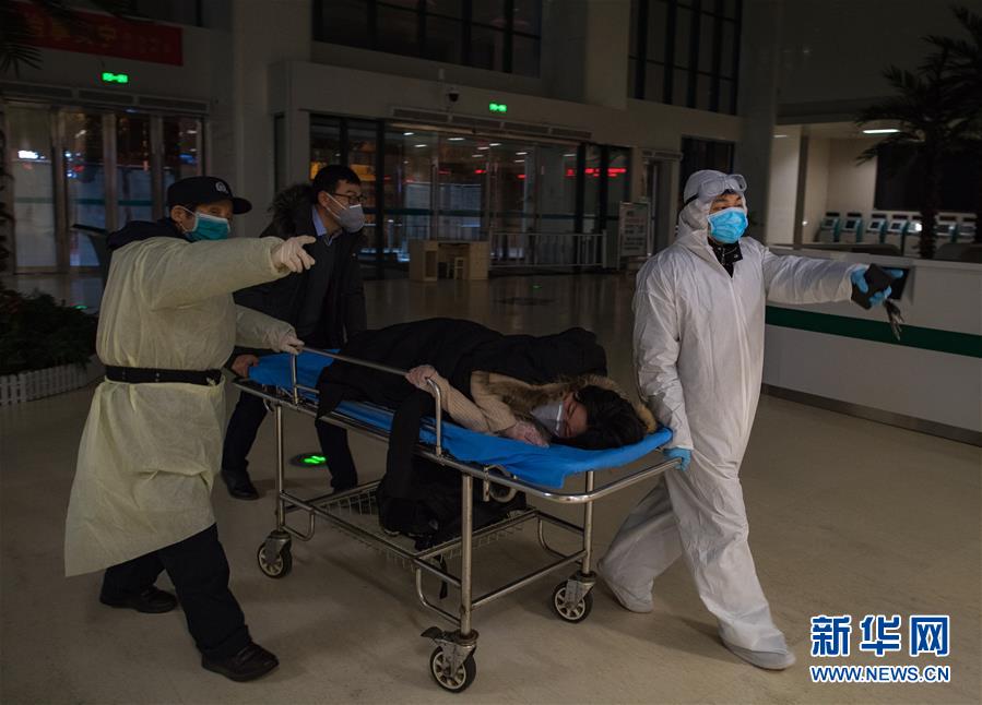2月29日凌晨,王震(右一)協助將產婦劉婷送至CT室做產前檢查。新華社記者 肖藝九 攝