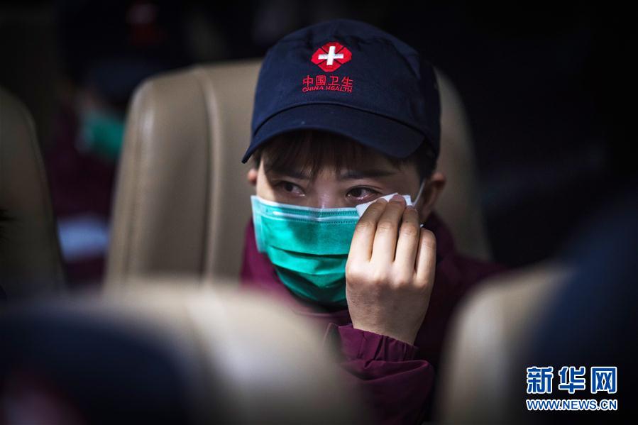 3月17日,陜西國家緊急醫學救援隊隊員閔渝婷在返程途中擦拭眼淚。新華社記者肖藝九攝