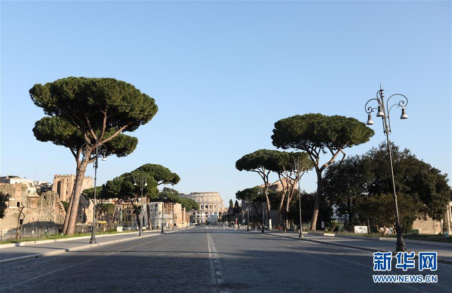 3月16日,在意大利首都羅馬,帝國廣場大道上行人寥寥。新華社記者程婷婷攝