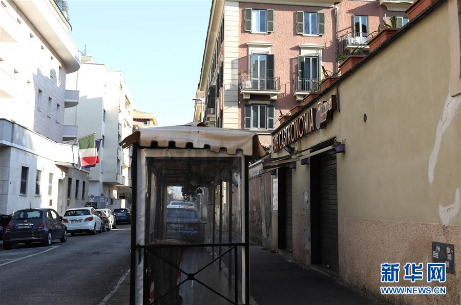 3月15日,在意大利首都羅馬,一家咖啡店因疫情關閉。新華社記者程婷婷攝