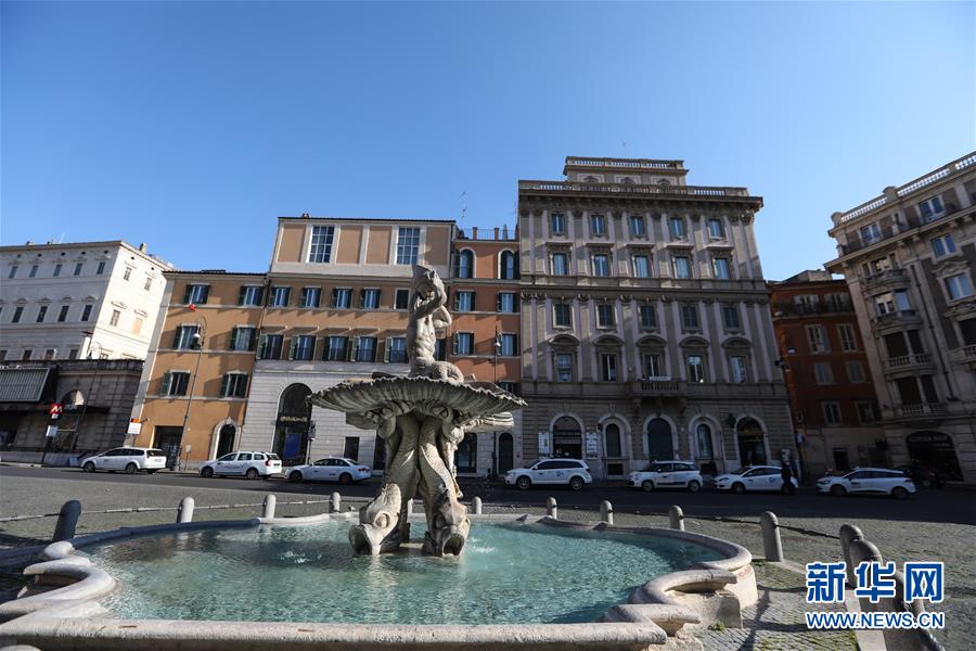 3月16日,在意大利首都羅馬,出租車在巴貝里尼廣場一處出租車停靠點排隊等候。新華社記者程婷婷攝