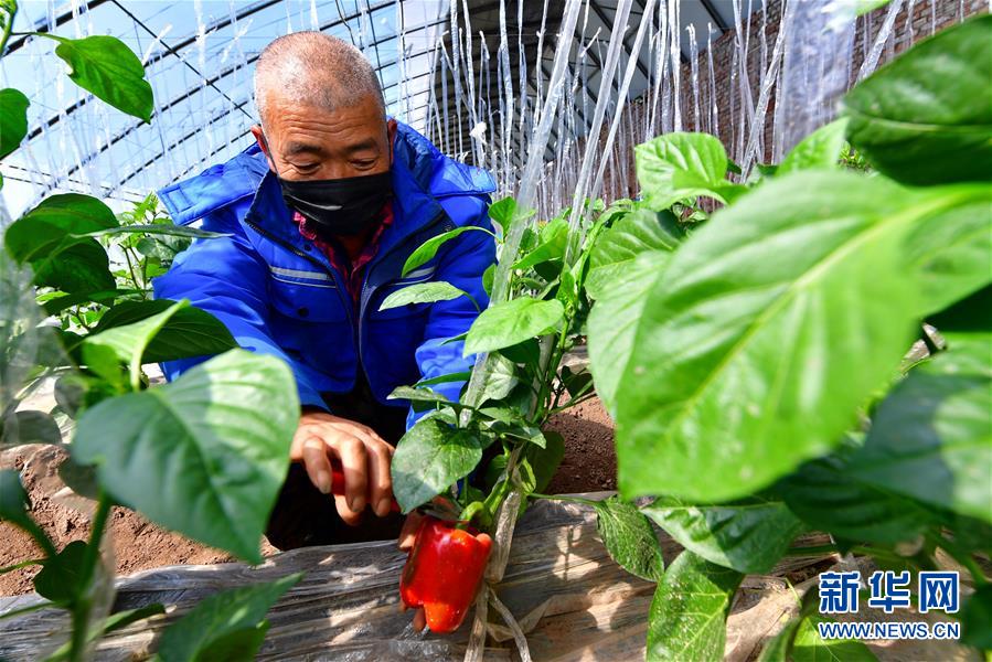 3月18日,在中國鐵路太原局集團有限公司新創云竹生態農業園,農民在采摘辣椒。新華社記者 曹陽 攝