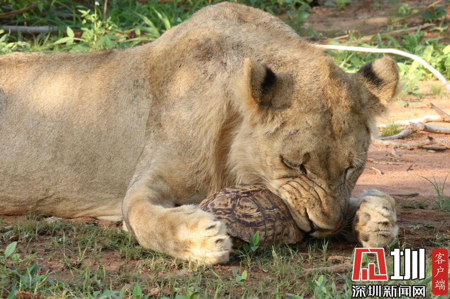 一只笨獅子瞄準烏龜當“零食”,結果吃到生氣!