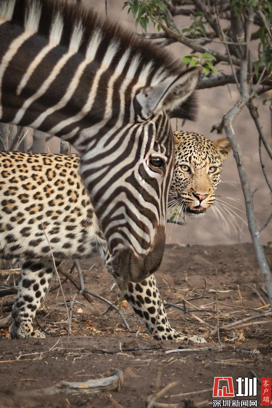 獵豹仿佛和斑馬成為了好友,緊緊跟隨這個新伙伴一起行走。