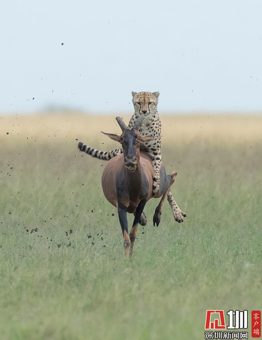 肯尼亞,攝影師Dick van Duijn在馬賽馬拉保護區捕捉到這令人心跳加速的一幕,一只獵豹追著一只羚羊奔跑,羚羊的臉上都是恐懼和驚慌,最終獵豹追上羚羊,羚羊難逃死亡厄運。