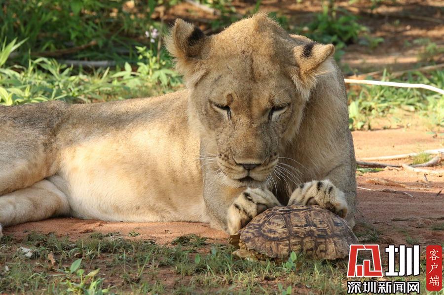 一只笨獅子瞄準烏龜當“零食”,結果吃到生氣!