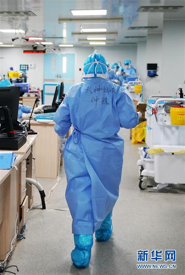 80后護士仲雅快步走向患者床旁準備護理(3月20日攝)。 武漢火神山醫院重癥醫學一科的護理團隊共50名護士,其中絕大多數是80后、90后女性,她們不懼危險,奮戰在抗擊疫情的最前沿“紅區”。 新華社記者王毓國攝