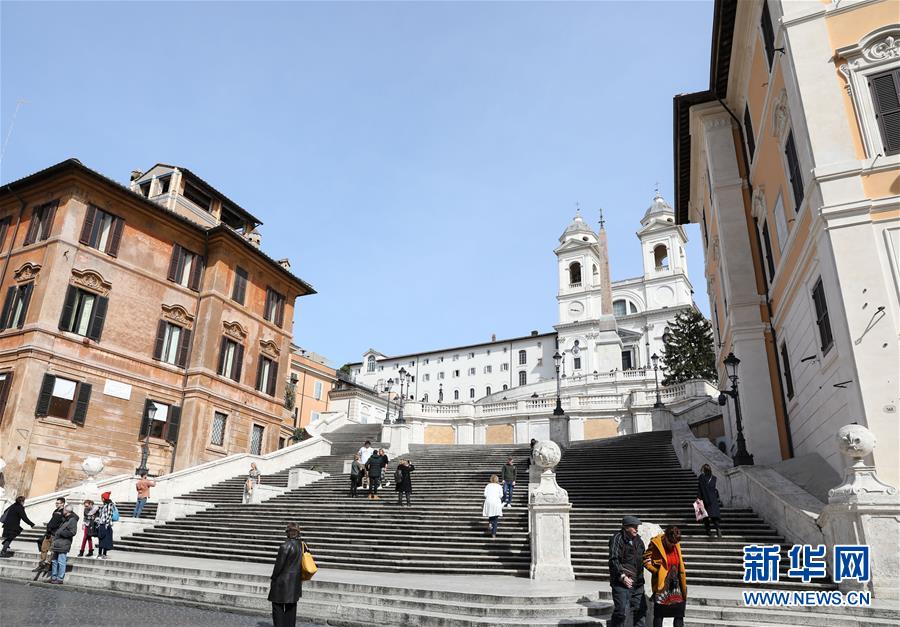 3月10日,在意大利首都羅馬,西班牙臺階上游客明顯減少。新華社記者程婷婷攝