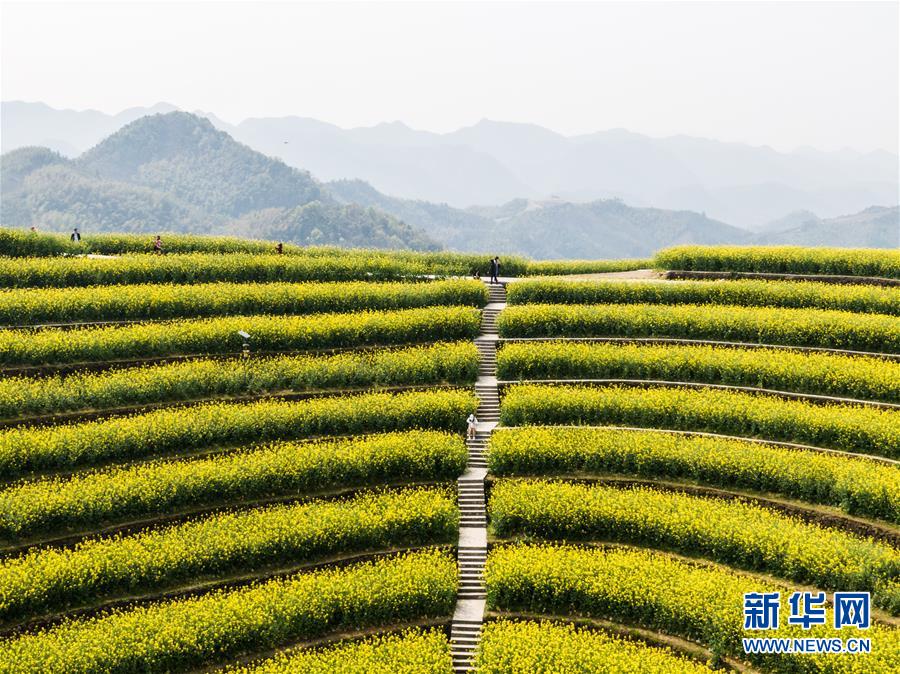 近期,隨著疫情防控形勢向好,景區開放。浙江省杭州市富陽區新登鎮上旺村黑山頂的梯田上油菜花競相開放。黑山頂面積近100畝,一年四季都能看日出、日落、晚霞、云霧,當地希望將其打造成現代化管理的農場,通過種植油菜花、桃花、梨花、高粱、旱稻等各類農作物,發展觀光農業,推動鄉村旅游。