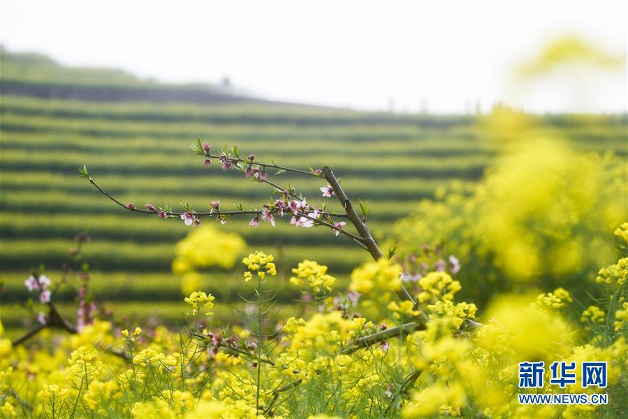 3月25日,新登鎮上旺村黑山頂的油菜花海與桃花相互映襯。新華社記者徐昱攝