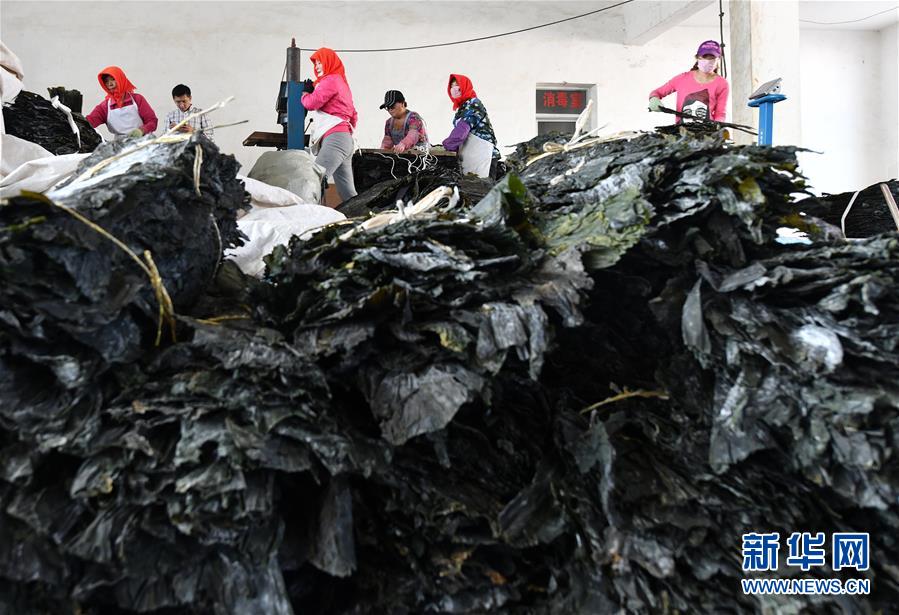 大欽島鄉東村居民在加工海帶(5月23日攝)。新華社記者朱崢攝
