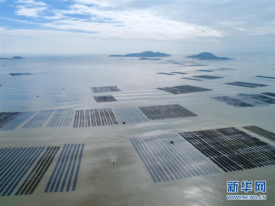 這是11月4日無人機拍攝的霞浦縣三沙鎮的紫菜種植區。近日,福建省霞浦縣沿海6萬畝紫菜迎來收獲季節,漁民們出海收獲紫菜,海上田園一派繁忙豐收景象。新華社記者姜克紅攝