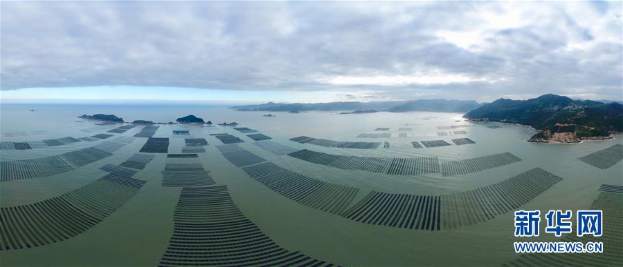 這是11月4日無人機拍攝的霞浦縣長春鎮的紫菜種植區(拼接照片)。近日,福建省霞浦縣沿海6萬畝紫菜迎來收獲季節,漁民們出海收獲紫菜,海上田園一派繁忙豐收景象。新華社記者姜克紅攝