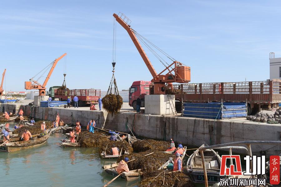 場面壯觀!山東威海收割海帶