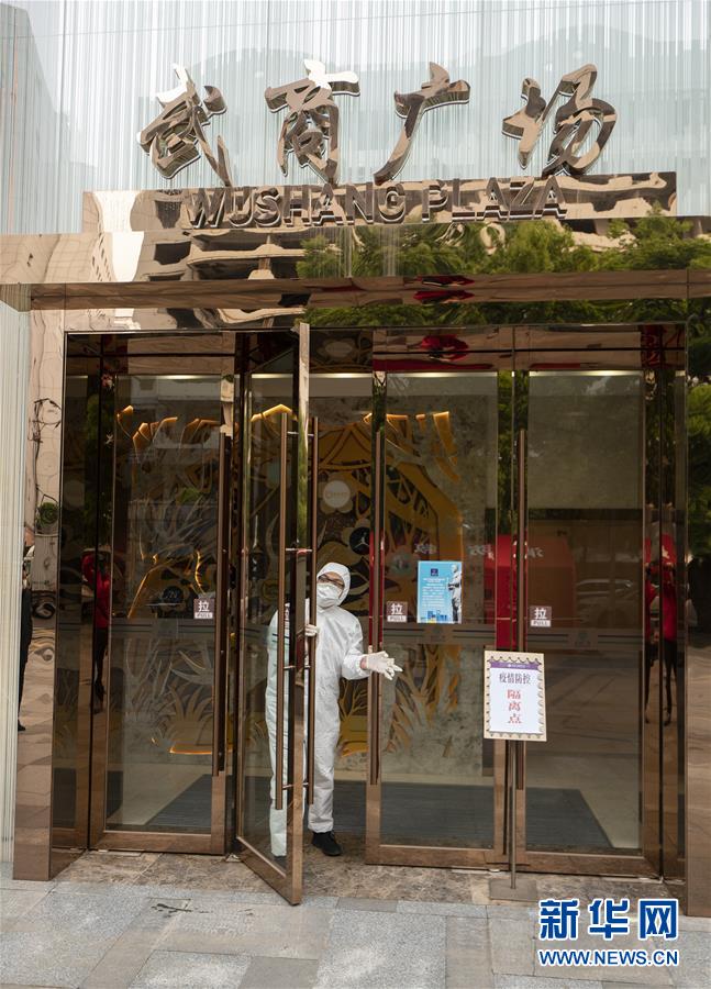 3月30日,在武商國際廣場,一位工作人員打開隔離點的大門。進入商場時體溫超標的顧客,將被留置在此,等候醫護人員。當日,武漢市多家商場開門迎客。新華社記者費茂華攝