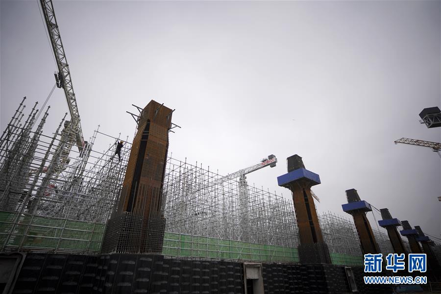 京雄城際鐵路雄安站總建筑面積47萬平方米,地上3層,地下2層,其中地下主體結構將于近期完成,即將轉入地上主體結構施工。新華社記者邢廣利攝